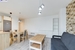Salon wyposażony jest w sofę ze stolikiem kawowym, ściankę telewizyjną, rozkładany stół z czterema krzesłami. Na oknach znajdują się plisy.