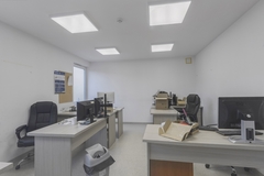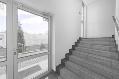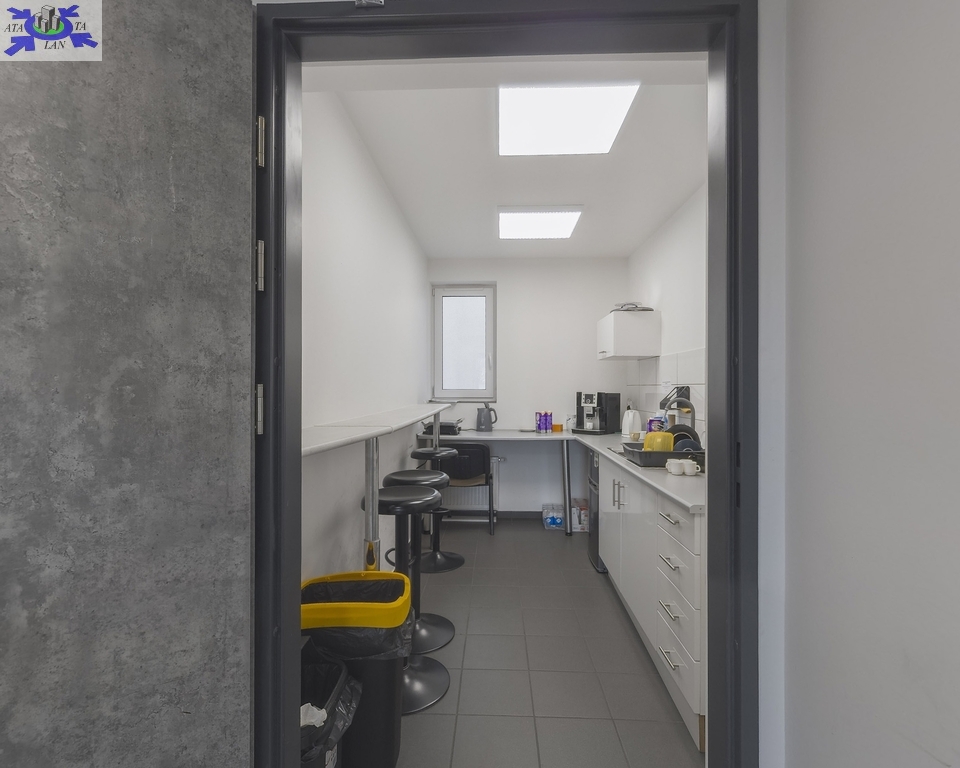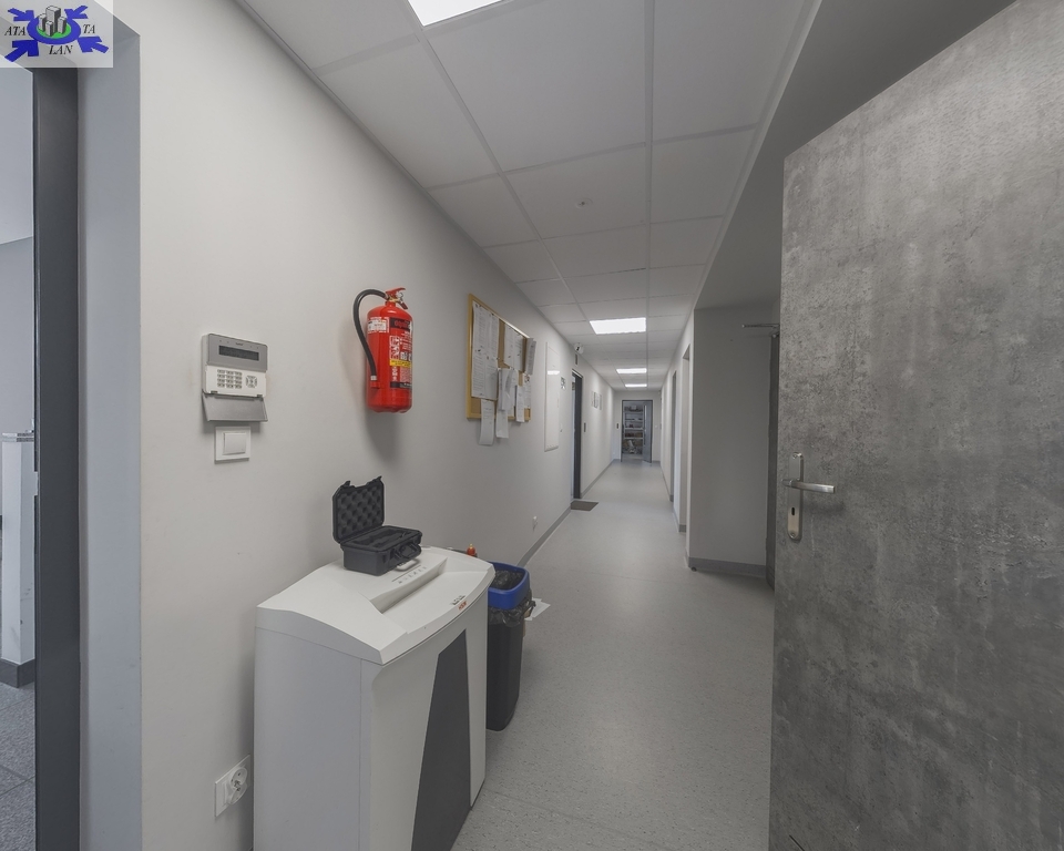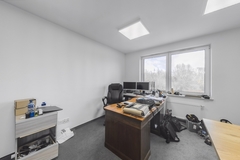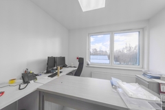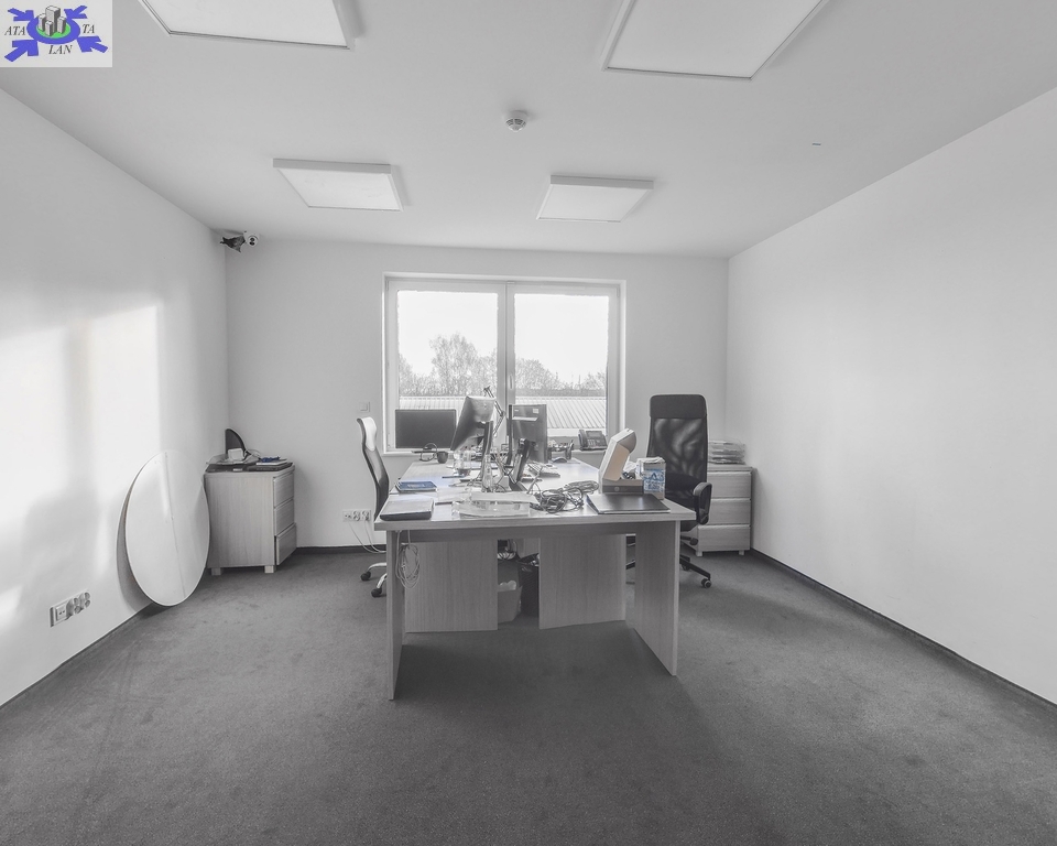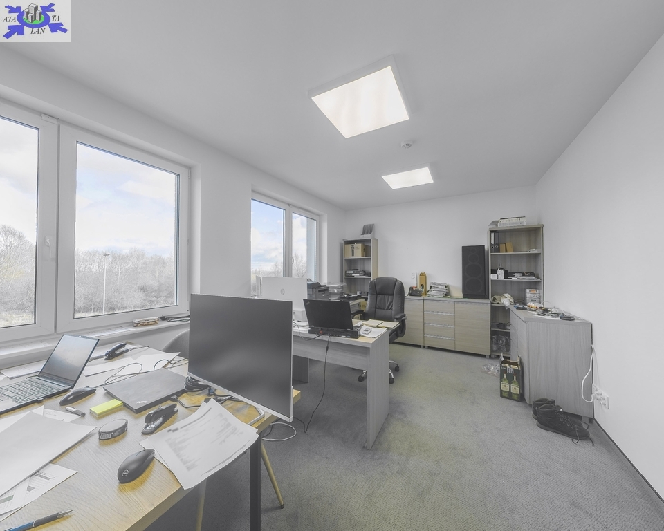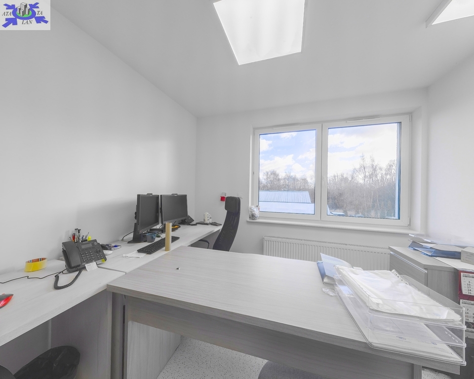 Jasne pokoje biurowe z dużymi oknami zapewniającymi dostęp światła dziennego.