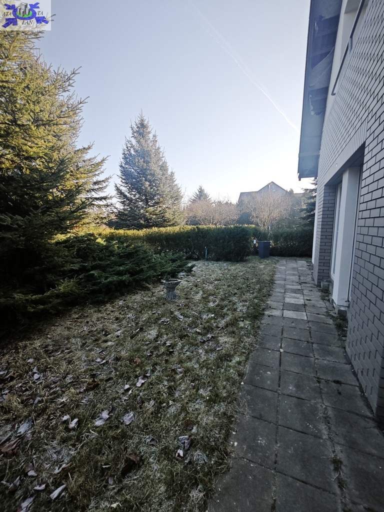 Z każdego pokoju bezpośrednie wyjście na duży, piękny ogród, który pozostaje wyłącznie do dyspozycji najemcy. Teren jest w całości ogrodzony, co zapewnia bezpieczeństwo i komfort użytkowania.