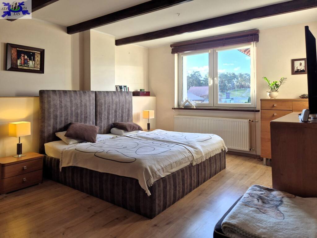 powierzchnia ok. 170 m2 parter kuchnia z jadalnią i wyjściem na taras łazienka z prysznicem sypialnia piętro duża łazienka z wanną 4 sypialnie ogrzewanie piec gazowy + ogrzewanie podłogowe w kuchni nowa instalacja wodno-kanalizacyjna i elektryczna panele fotowoltaiczne nowy dach pokryty blachodachówką ocieplenie - styropian 15 cm monitoring garaż