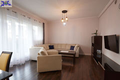 Mieszkanie pierwotnie miało trzy pokoje, jednak właściciele połączyli dwa z nich, uzyskując przestronną strefę dzienną. Istnieje możliwość łatwego przywrócenia pierwotnego układu i wydzielenia dodatkowego pokoju.