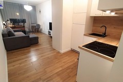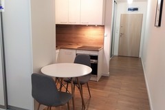 Apartament położony w bliskiej okolicy Centrum 5min na pieszo do Bramy Portowej na pograniczu Centrum, a Pomorzan. Bezpieczne zamknięte osiedle z całodobową ochroną. Po drugiej stronie ulicy osiedla pętla tramwajowa (kilka linii)... Bardzo dobre połączenie w każdym kierunku miasta. Mieszkanie prawie nowe, mało użytkowane . Salon z balkonem połączony z aneksem kuchennym. W całym mieszkaniu na podłodze wysokiej klasy panele, połączone z terakotą, ściany gładź tynkowa. Piękne nowoczesne wykończenie i wyposażenie. W salonie narożnik z funkcją spania , telewizor LCD, szafka TV. Eleganckie oświetlenie. Aneks kuchenny wyposażony w wysokiej klasy sprzęt AGD lodówka , piekarnik, okap, płyta indukcyjna, kuchenka oraz zmywarka.... Całość w zabudowie na wymiar z najwyższej jakości materiałów. Kabina prysznicowa, toaleta, umywalka z szafką, pralka, lustro. Przedpokój z szafą na wymiar, wieszak. Niskie koszty utrzymania czynsz około 250zł, ogrzewanie, prąd według zużycia.
