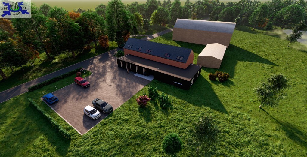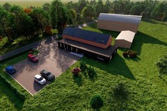 Na działce znajduje się parterowy budynek gospodarczy w bardzo dobrym stanie o powierzchni 300mkw (2 poziomy), który można przekształcić chociażby w budynek noclegowy pod usługi krótkotrwałego zameldowania. Projekt koncepcyjny z 2023 roku jest w cenie działki.