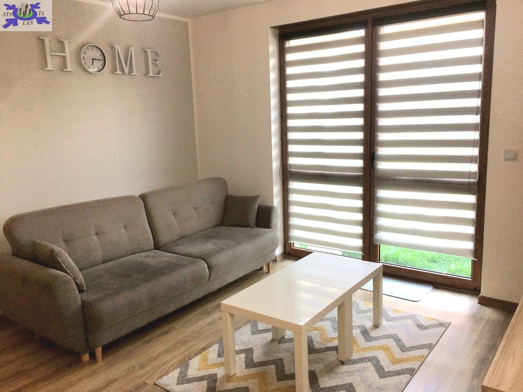 Lokal składa się z przedpokoju, łazienki, salonu z aneksem kuchennym z wyjściem na ogródek oraz sypialni o łącznej powierzchni 38,2 m2.