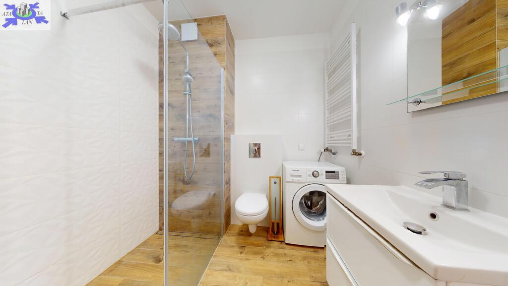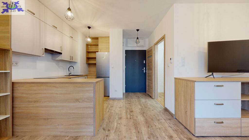 Pokój z aneksem kuchennym i wyjściem na balkon. Łazienka razem z wc, w przedpokoju szafa w zabudowie. Komórka lokatorska o powierzchni 2 m2 i miejsce postojowe pod budynkiem.