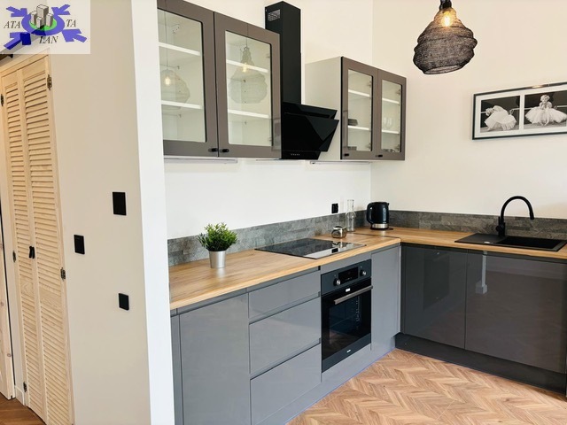 Nieruchomość została wykończona w wysokim standardzie, z dbałością o detale oraz funkcjonalność przestrzeni. Wnętrze jest w pełni umeblowane i wyposażone w sprzęt AGD (m.in. lodówka, płyta grzewcza, piekarnik, okap, pralka), co zapewnia komfortowe warunki do zamieszkania od pierwszego dnia.