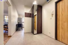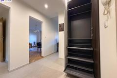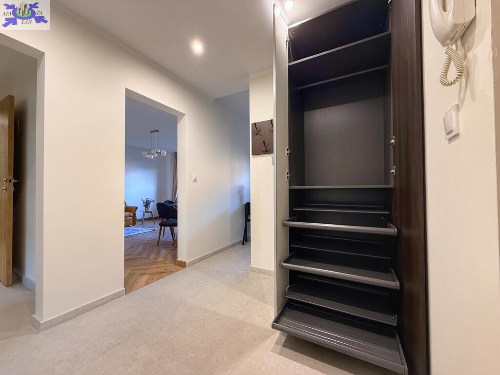 Z miejscem na zabudowę i wygodne przechowywanie a w nim wieszak na kurtki, szafa na ubrania oraz na buty - z wysuwanymi półkami.