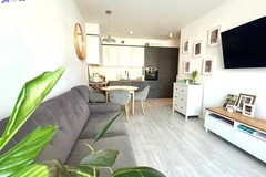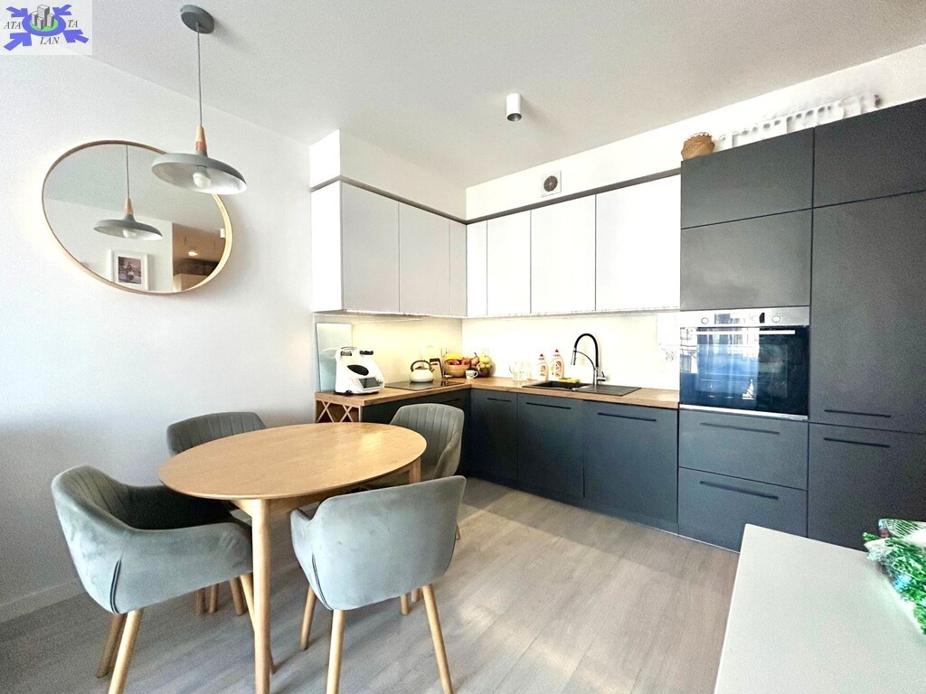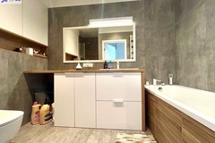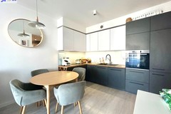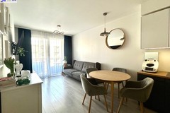 Ściany malowane, na podłodze panele i terakota. W łazience kabina prysznicowa i obudowa wanny wyłożone drewnem egzotycznym. W aneksie kuchennym meble w zabudowie wraz ze sprzętem AGD (lodówka z zamrażarką, zmywarka 80 cm, piekarnik, płyta grzewcza pochłaniacz) pozostają w cenie mieszkania. Okna PCV 3-szybowe. Nowy budynek, przed budynkiem miejsca parkingowe. Mieszkanie usytuowane od strony południowo - zachodniej.