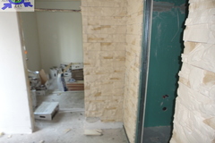 Wykończenie pomieszczeń mieszkalnych na I i II piętrze - na podłogach panele, ściany gładzone i malowane (do odświeżenia), okna pcv z okleiną drewnianą, ogrzewanie z kominka z płaszczem wodnym, kuchnie w zabudowie wyposażone, łazienki urządzone w glazurze i terakocie z białą armaturą. Lokal mieszkalny na parterze wymaga wykończenia, aktualnie jest w standardzie"developerskim". Do dokończenia jest wyłożenie podłóg, malowanie ścian, wykończenie kuchni i łazienki.